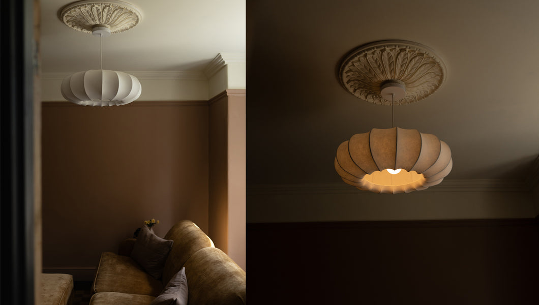 The Fibre 60 Pendant Light takes centre stage in Sam & Sophie’s beautifully balanced home — blending period charm with contemporary style and natural warmth.