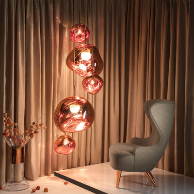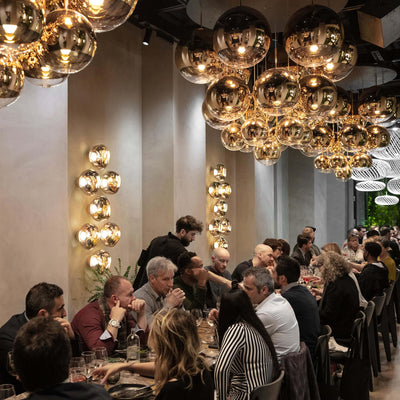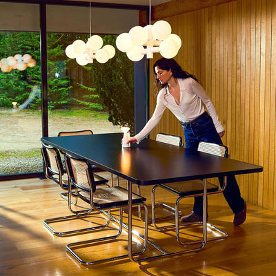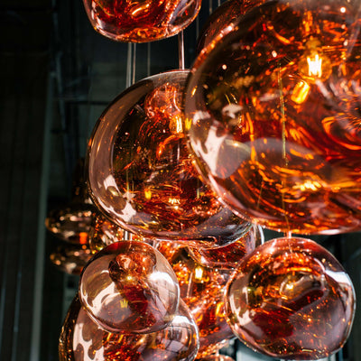 You can also double-up your cluster pendant as a statement centrepiece with our rectangular algorithm cluster. Crafted from a handblown, seamed cast glass sphere, this fixture has been created to resemble an artistic snowglobe.
