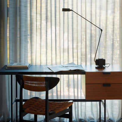 We recommend choosing a desk lamp that allows you to change the brightness and temperature of the colour, enabling you to increase your task lighting when required. Examples of task lamps in our collection with this functionality include the Nyborg compact desk lamp and the Bug portable rechargeable light.