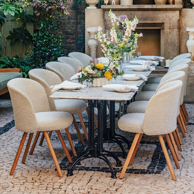 Our range covers every need: oak dining chairs that age gracefully over time, black dining chairs that anchor a minimal interior, fabric dining chairs that soften a hard-edged room or dining chairs upholstered with leather. Whether you're buying a dining table and 4 chairs or selecting kitchen and dining chairs for a larger setting, we offer options to suit every layout, palette and decor style.