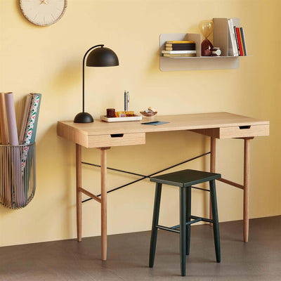 A desk for home office should reflect how you live and work. There are so many different designs that take into both work and interior requirements. A floating desk enhances minimal spaces, giving a contemporary and weightless look. The Montana Bureau Work Desk is an excellent example of this. An iconic mid century desk, like the Nyhavn Desk by Finn Juhl, adds character with warm wood tones and will never go out of style. For those who prefer modern simplicity, a white desk or contemporary office desk creates a calm and uncluttered feel.