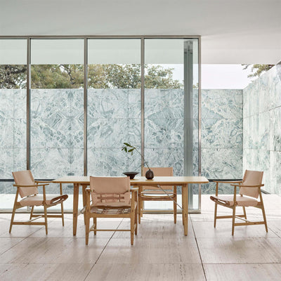 Our range includes wooden dining chairs in oak, walnut and beech, metal dining chairs with sleek contemporary frames, and sculptural plastic designs that combine materials with ease. Sourced from leading designer brands such as Normann Copenhagen, &Tradition, Carl Hansen & Son, Fritz Hansen and HAY, each chair is built to last and designed to work seamlessly alongside a wide variety of dining tables and chairs.