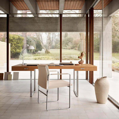 When selecting dining room chairs, consider scale first. A comfortable fit between seat height and table top is essential, as is proportion to the size of the room. For those who like to change layouts or frequently entertain guests, stackable dining chairs, like the Form & Refine Lunar Chair make it easy to adapt your space. If you prefer a more substantial presence and are not worried about saving space, choose something heavier like the Fritz Hansen Carimate Chair which has a grand feel.